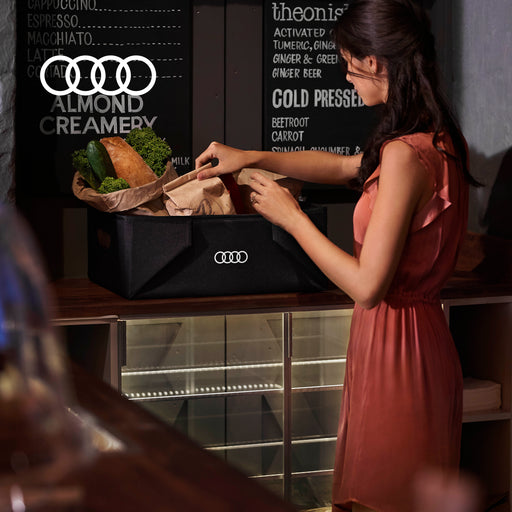 The Audi collapsible luggage box is the ideal storage box for your vehicle s luggage compartment. It is made from polyester and may be used to stow...